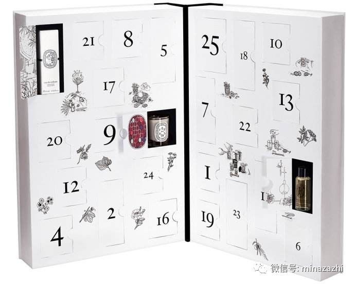 今年的日历包含25款产品,其中14件产品是Full Size装,包括Diptyque、Hourglass、Laura