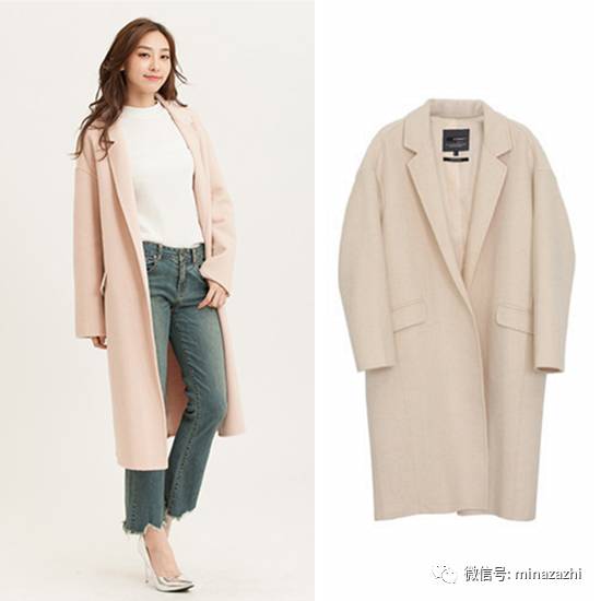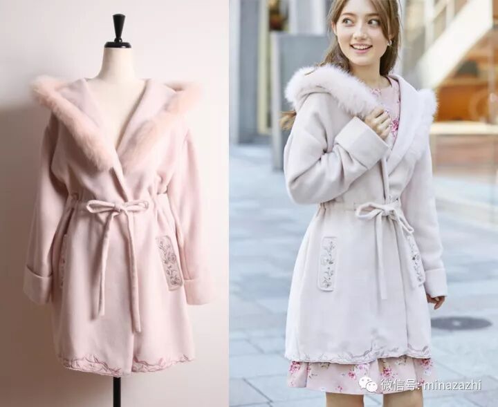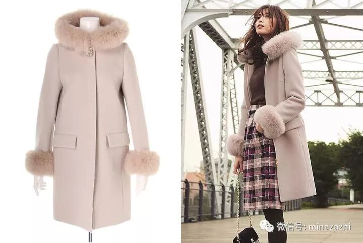 偏向和服外套的毛领大衣,看上去非常轻盈不厚重!收腰的设计也能凸显好身材哦,粉嫩的色彩在冬日里尽显甜美。参考价:1066元。