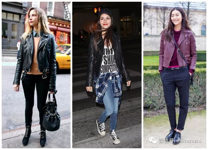 机车皮夹克中性又帅气,搭配牛仔裤,随性又洒脱,同样也是深秋必备款~