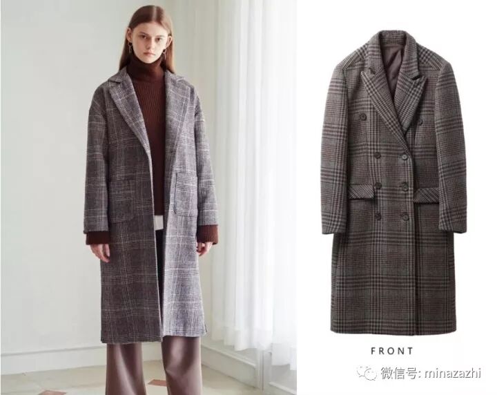 优雅轻熟的格纹西装大衣,搭配深色系的服装,充满知性的味道。参考价:2125元。