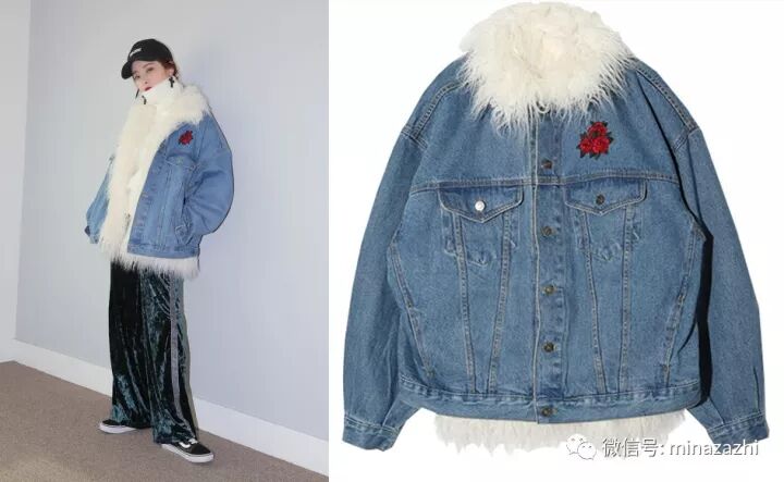 牛仔毛外套十分保暖,胸前和背后都有玫瑰刺绣,个性感十足。参考价:1037元。