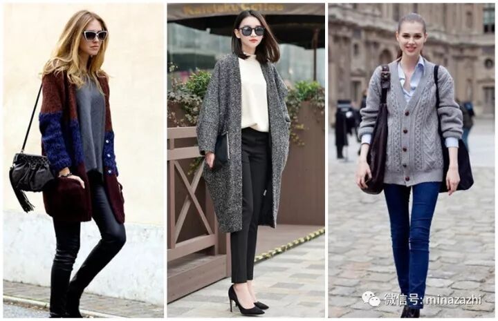 深秋自然少不了针织衫外套,短款休闲十足,长款休闲中又透着满分的女子柔情~