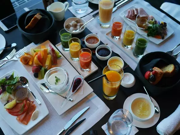 早餐第一天本来要选择日式,结果因为米需要蒸40分钟,选择了美式早餐,水果和蔬菜量很大外加各种果汁,没有惊艳但是摆盘和健康度超高。