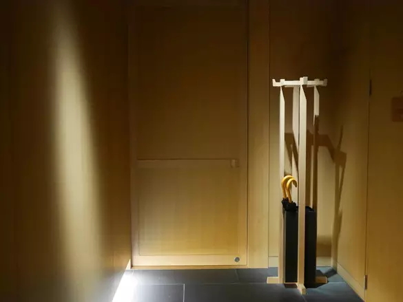 门卡是一张皮质的小包,感应式的设计简直想带回家(显然带回家也没有什么用!),入门后有一个回廊式设计,有衣架和换鞋地方,并且空间还非常之大,推开门棉质黑色拖鞋早就准备好了,安缦的房间面积非常之大,下沉式客厅以及洗手间做了分割增加其私密性,同时一旦推开暗门整个空间感又开阔起来,在寸土寸金小到哭泣的东京酒店里,找一个大房间可真不容易。