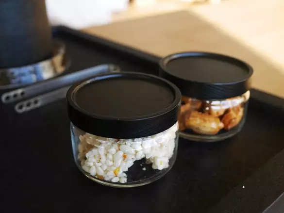 特别对一款自家出品的果汁系列包装很好奇,鲜榨果汁再密封在玻璃器皿之中,最上面是用纸包裹起来丢在冰箱。