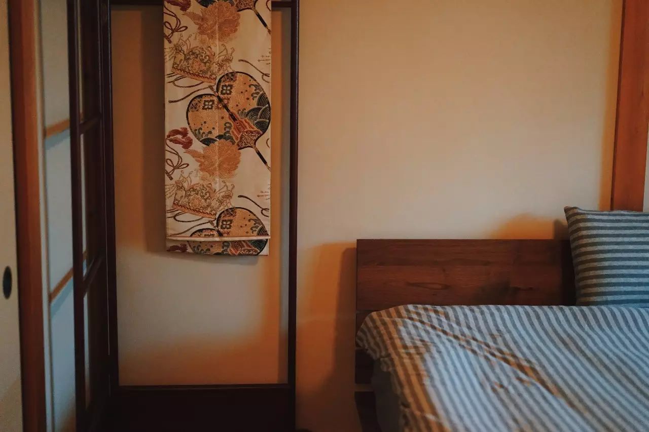 几个中日热爱文化的年轻人开了几间旅馆,刚好我在网上找到所以住下,小伙子们很亲切,藏在巷子里不起眼推开门才别有洞天,两层复式小楼还有一个小庭院,榻榻米和床都有,还有洗衣机和小厨房,连灯都是专门找了设计师淘来。