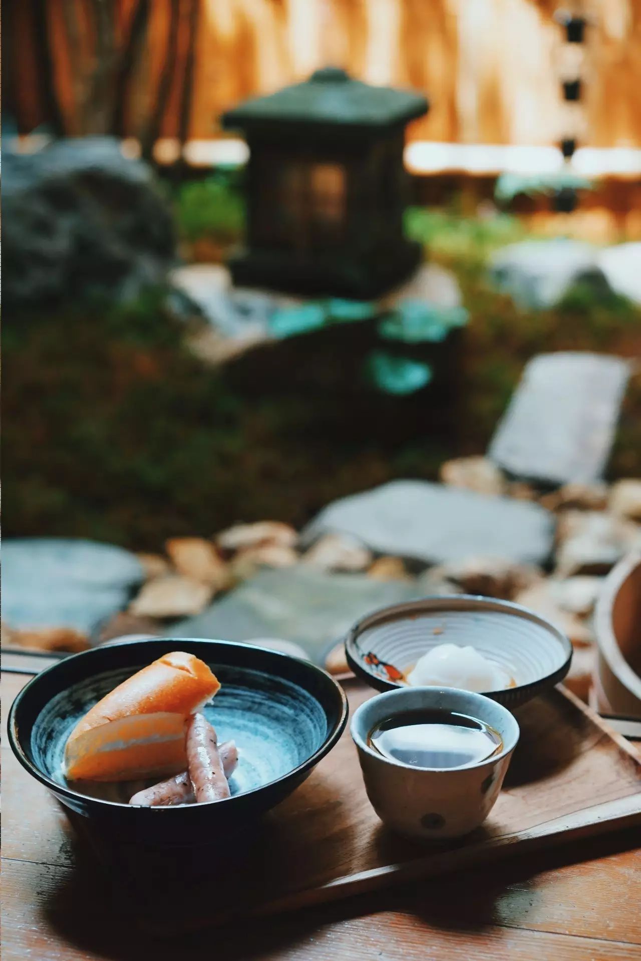 早餐也比较简单,便利店买了面包,自己煮了咖啡,煎了香肠对着院子吃,另外的朋友在一旁看书,只听得到风铃的声音。