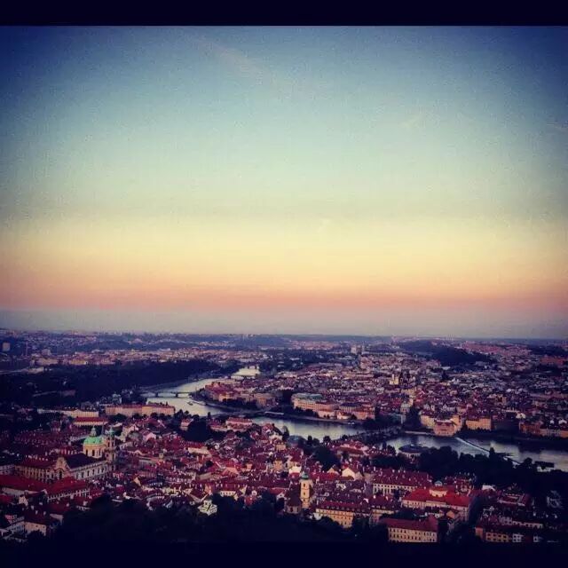在布拉格的山顶,看着秋日的夕阳被拉到夜幕,整个城市都是彩色的,黄色,红色,绿色的叶子随着夕阳慢慢消失在眼底。