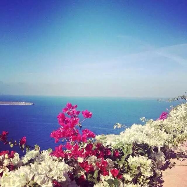 希腊圣托里尼的秋天开满了三角梅,很多人对着爱琴海在约会喝酒,沿着高高低低的山路一路可以找到很多美丽的小店,这里真的是世界上最浪漫的地方之一,没有夏天那么炎热,秋天的时候温暖又舒服。