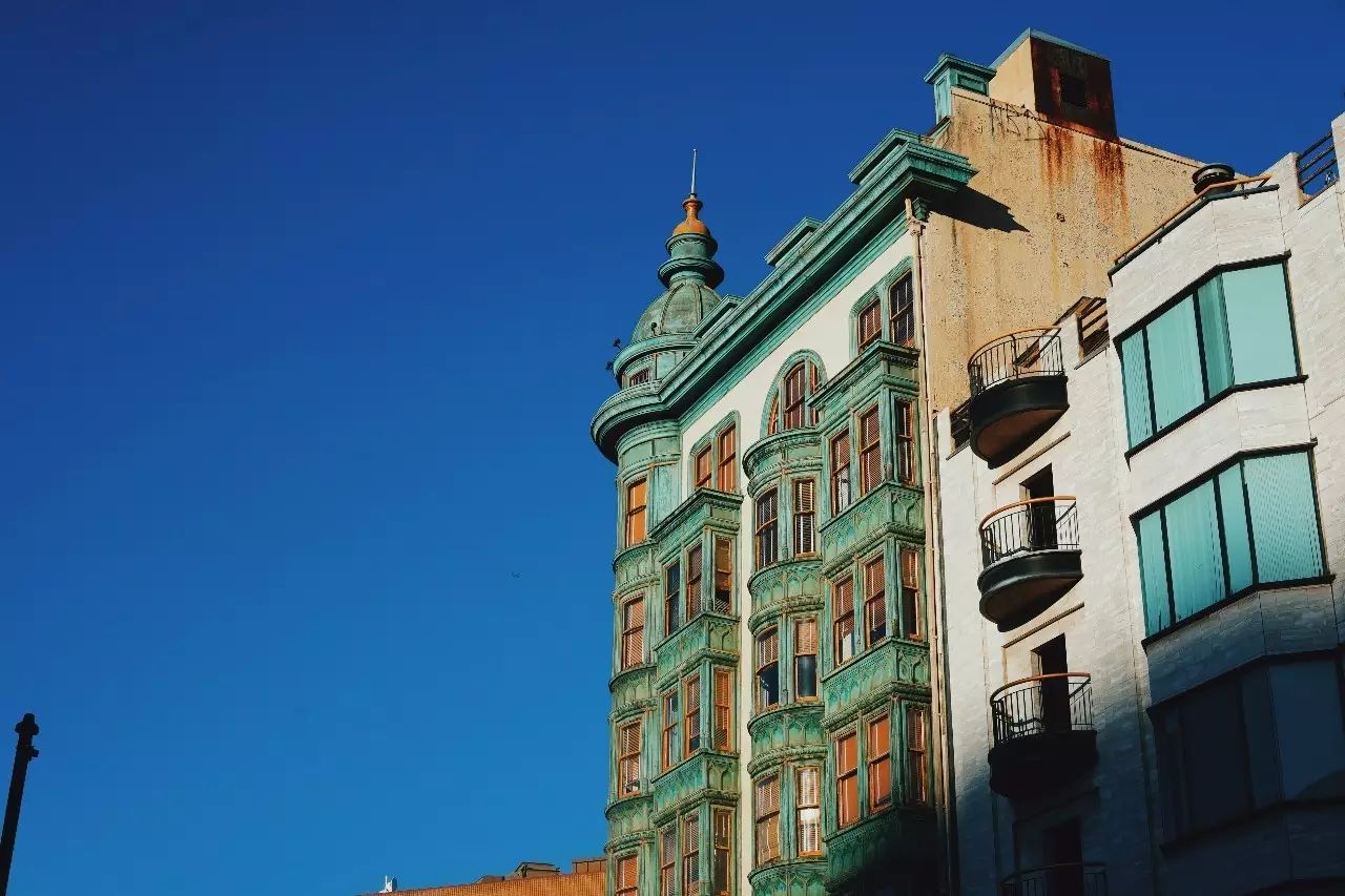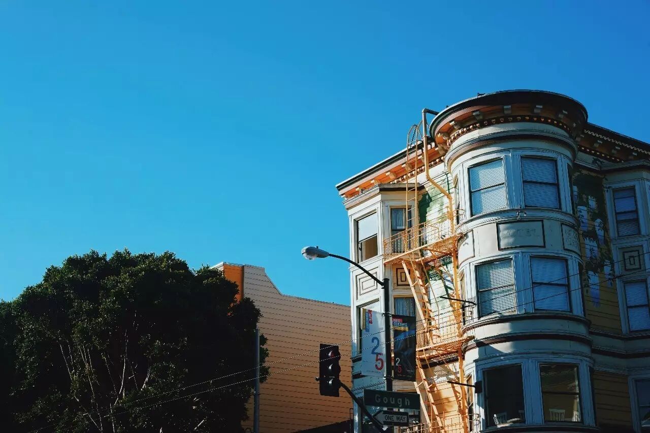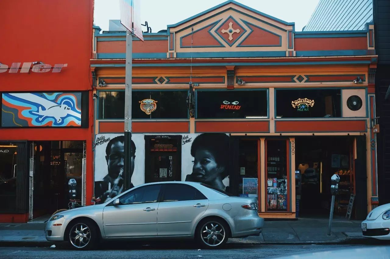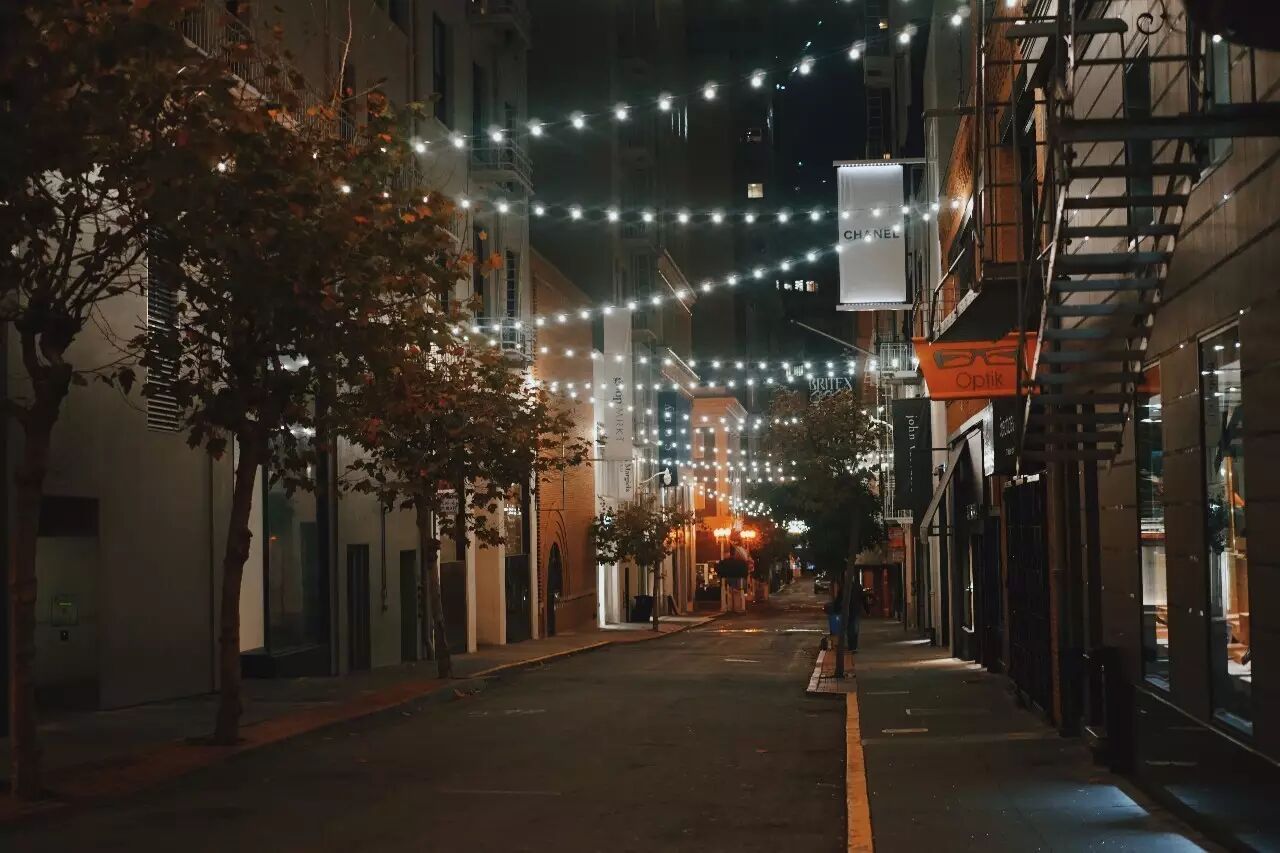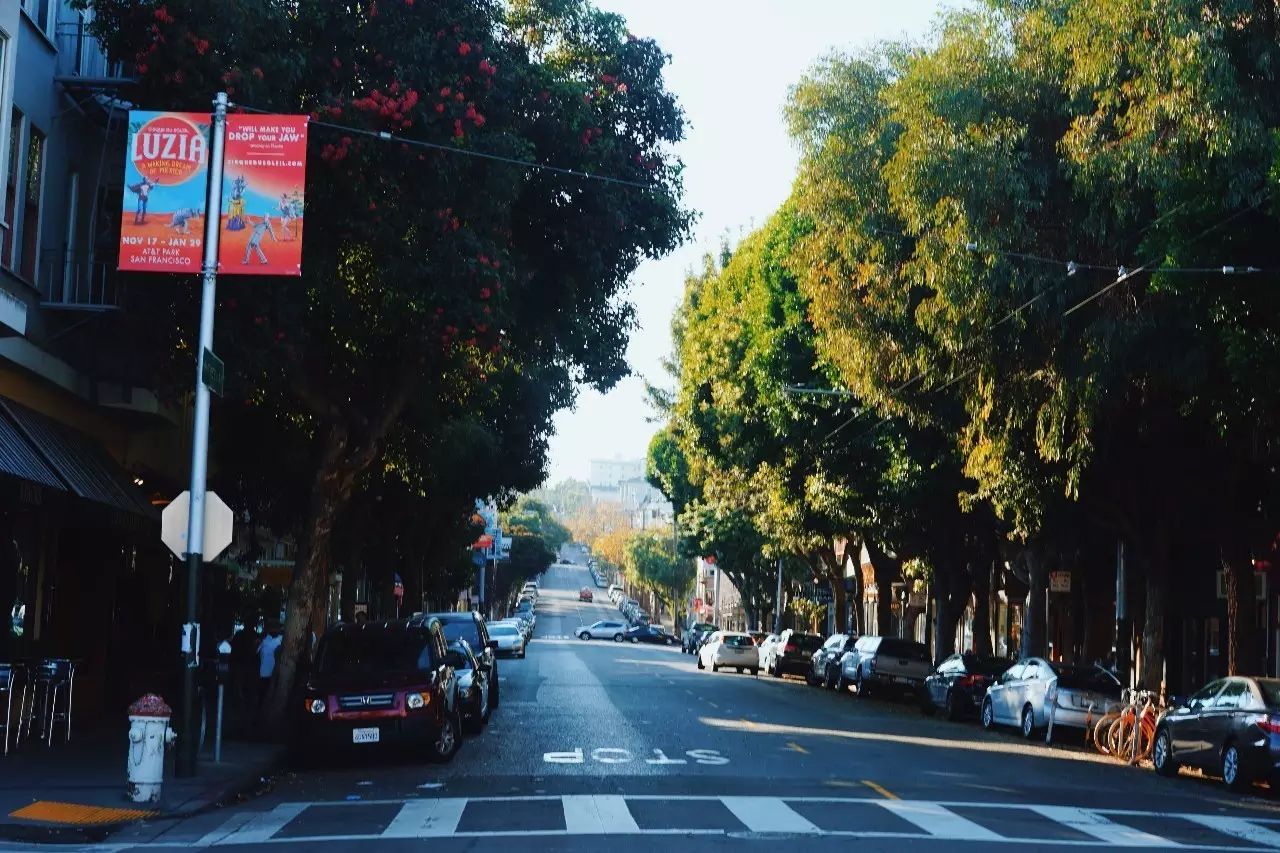 旧金山不大,大部分走路或者公车都能抵达,回家的时候看到这条路挂满了彩灯,想必是为了下个月圣诞节做准备,一对情侣拥抱在灯下,一切都像是电影里的场景。