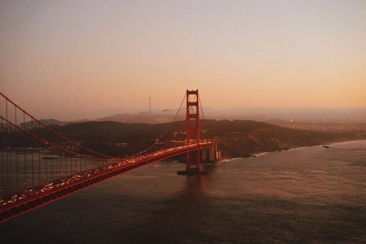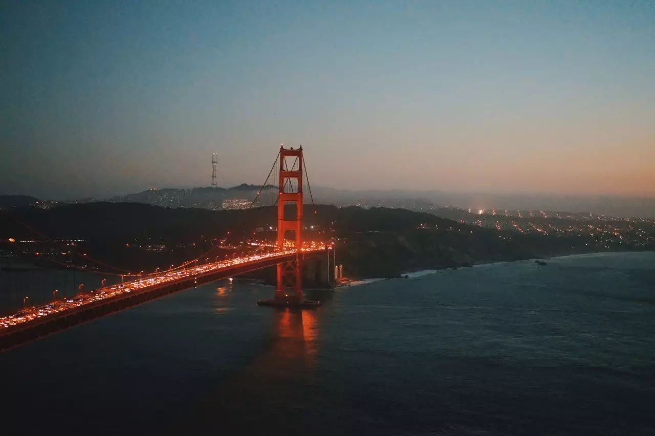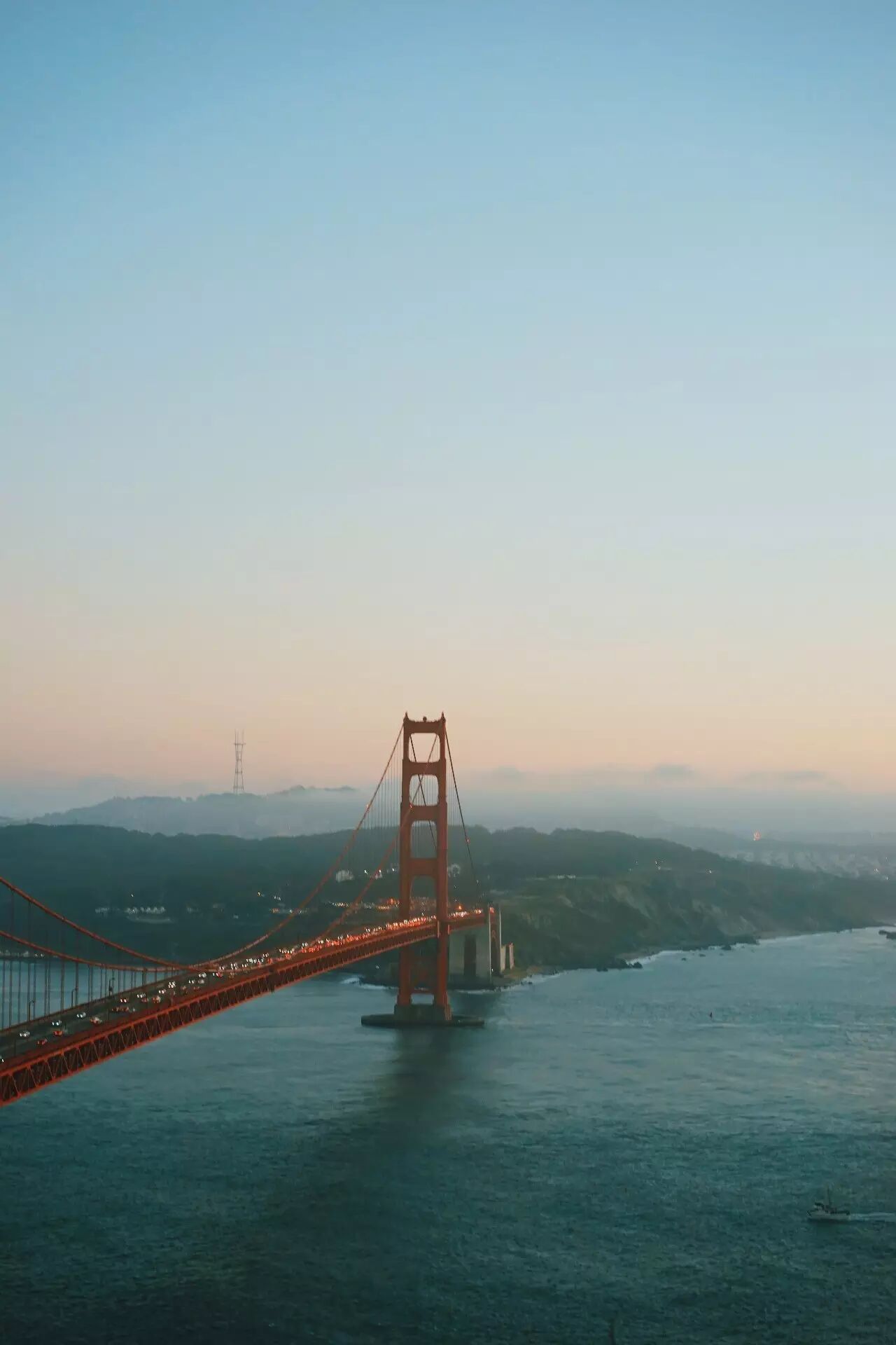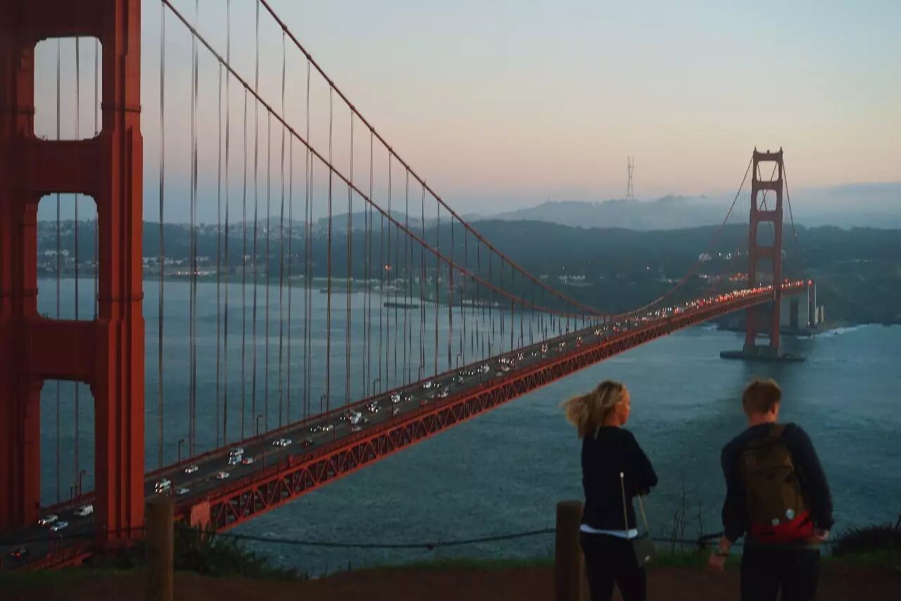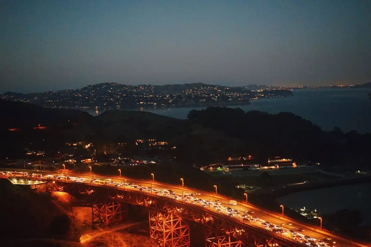 最终还是去看了金门大桥,开车到山顶看着大桥从白天慢慢到夜幕,山脉和水面从蓝色慢慢变成了黄色,粉红色。