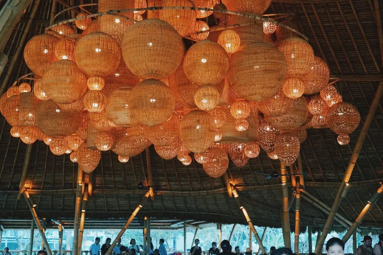 还没进门就看到很多身材极好的男男女女排队,很好奇里面到底是啥,巨大的藤编灯笼随着海风在头顶吹着。
