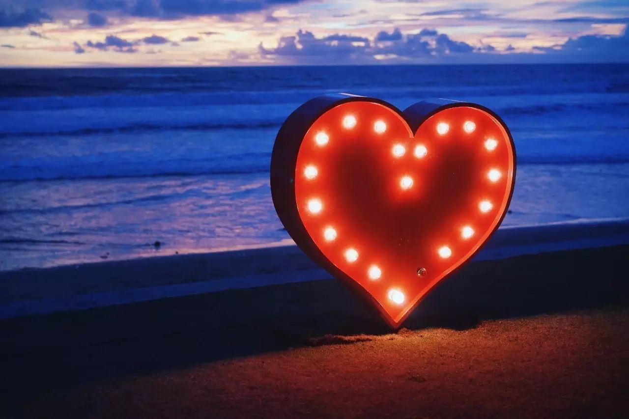 半小时后,一场壮丽的夕阳如期而至,海边的“心”慢慢点亮,好朋友说里面有一个灯泡是黑的,我说,也许我们就是那一个暗下来的灯泡,需要被点亮。
