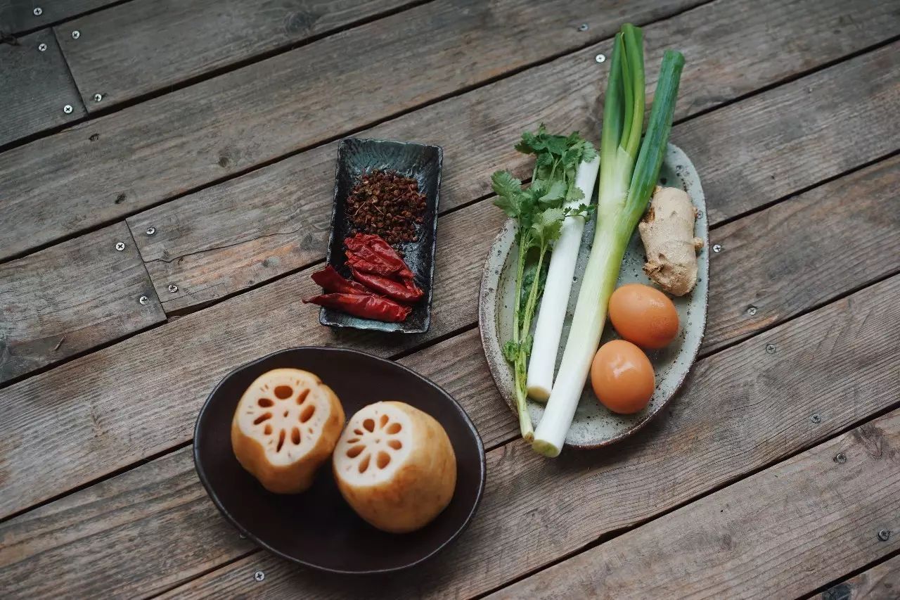 准备的配菜如下:莲藕,花椒,鸡蛋黄or鸭蛋黄,干辣椒,香菜,大蒜。