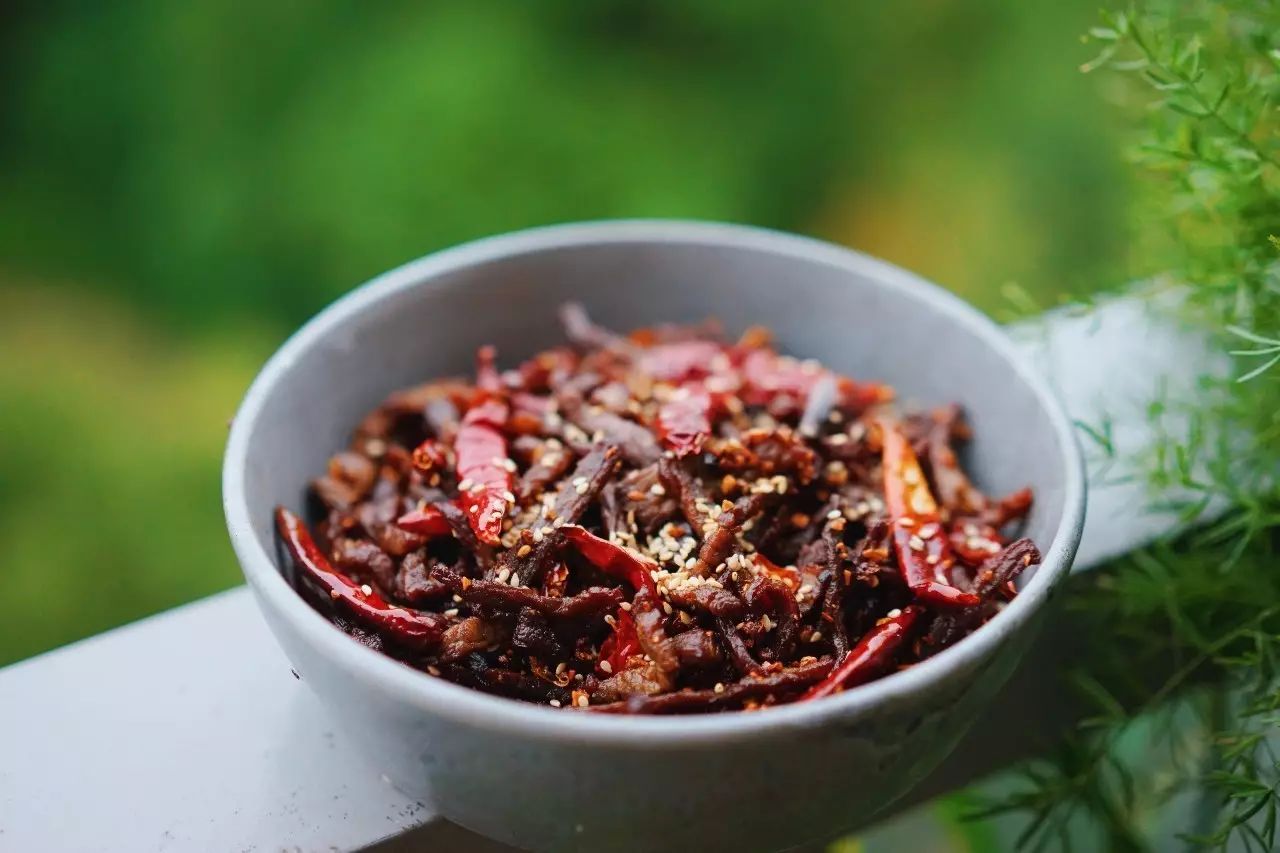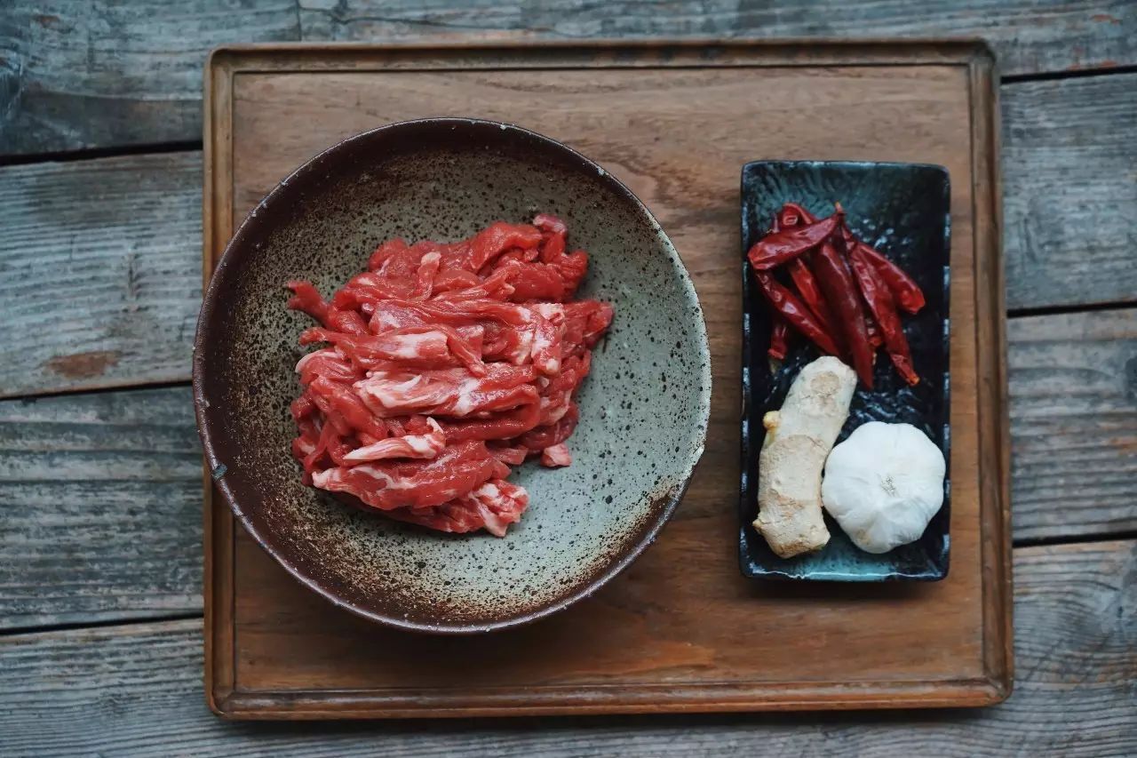 准备的材料:牛肉丝,可以直接买现成的,怕麻烦买切好的也可以,干辣椒,花椒,蒜和生姜,白芝麻,料酒。