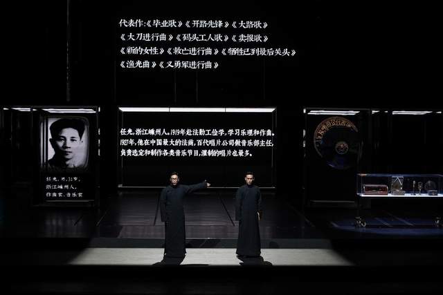 像是茅盾的《春蚕》、聂耳的《义勇军进行曲》、冼星海的《黄河大合唱》等等这些名家代表作也悉数被搬上舞台,其中有浩瀚史料里筛选出的真实记录,更有主创们的二度创作——演员穿梭于结构多变的舞台空间和多媒体投影之中,把那些经典作品的片段重新演绎了一遍,通过线上播出的多角度多景别画面切换,方能让我们真正从三百六十度触碰到那个热血年代,畅享沉浸式观剧体验。