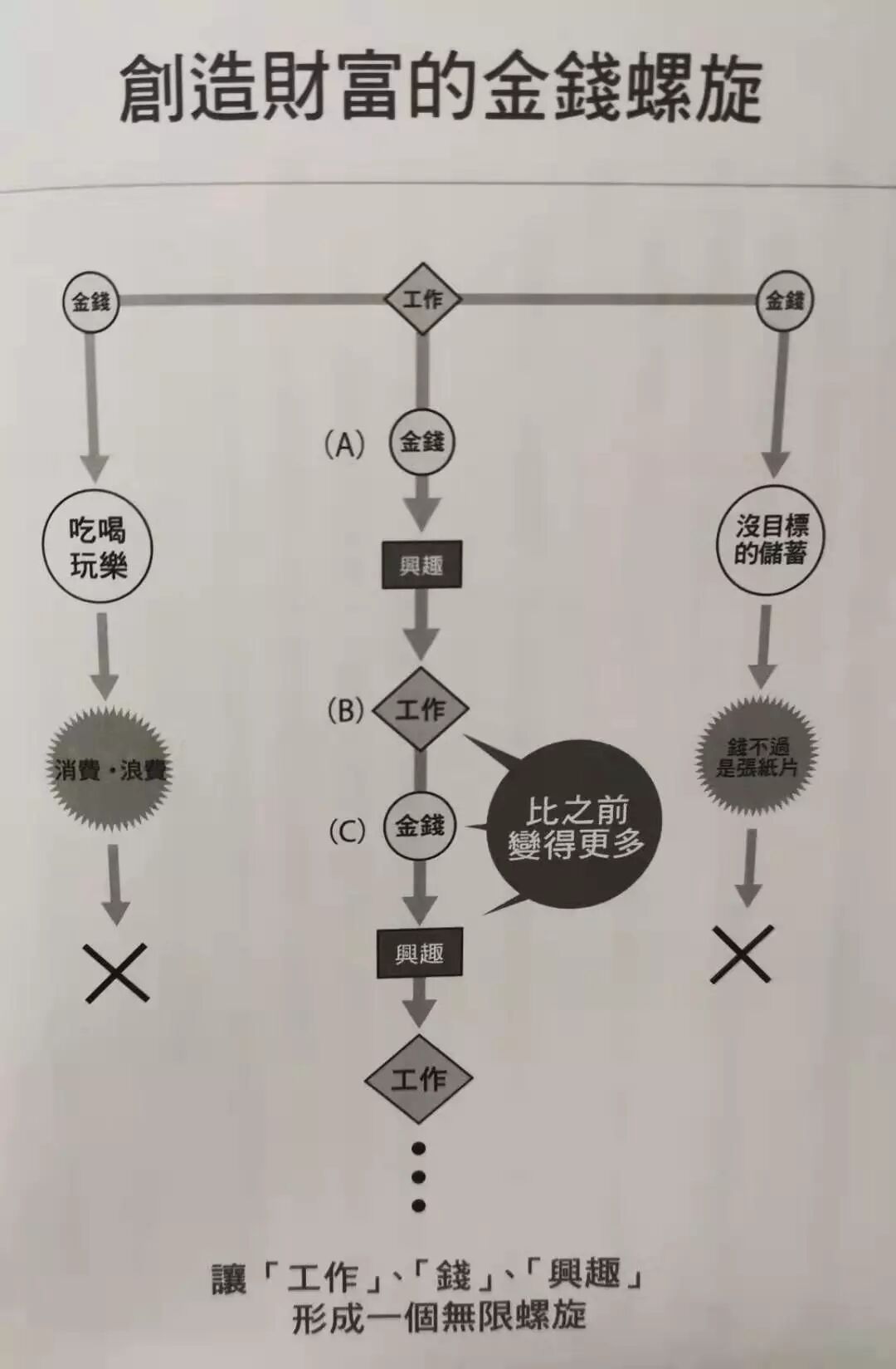 从图上可以看出,作者认为,钱,应该花在自己感兴趣且能创造价值的地方!