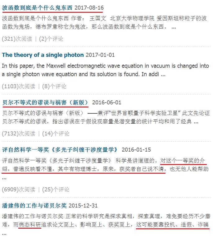 至于对潘建伟质疑最为重磅、也最有专业素养的王国文教授,在科学网上仍然在不断发文章,质疑量子计算和潘建伟。下图是他最近一年的文章,有兴趣的可以自己去看。