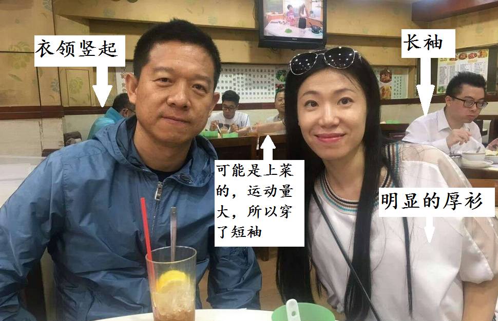 当然,贾会计在9月15日出现在香港,貌似在反驳谣言。但是这一切,又被顾颖琼和“股票说”揭穿。请看上面贾跃亭的衣服,现在香港的室外气温27~32度,中午更热,为什么他穿那么多衣服?身体不好吗?而且周围的人也穿了不少(包括围个大围脖和穿黑T恤,那T恤和裤子都显得很厚)?