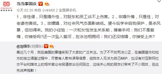 12月21日,美国检方决定不起诉刘强东性侵,理由是“证据不足”。随后刘强东和京东都发了消息,这成了近期的一个热点之一。不过最近当当网的李国庆却来“帮”刘强东开脱,引发了不小关注,怎么回事呢?李国庆是这么说的:
