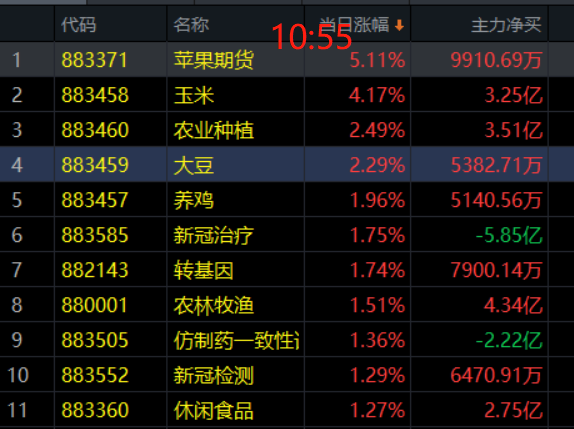 今天热门板块上来看,玉米、苹果、农业种植、大豆概念领涨两市,王者前面提示大家关注的农业、粮食概念逆势大涨。前面我们讲过,在混乱的时候,粮食加舆论就是稳定!粮食管饱肚子,文化传媒管人的想法,所以我们看好它们,大家可以持续关注,但要注意不要冲动追涨,控制仓位从容低吸方为上策。