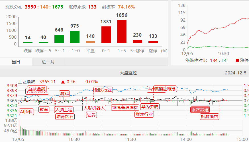 指数乏善可陈,仅存的亮点还是集中在个股炒作上面。超3000家个股上涨,涨停板100多家,跌停板9家,跌停板数量有所减少。整体赚钱效应略微修复。两市全天成交1.5万亿,较前一交易日小幅缩量。