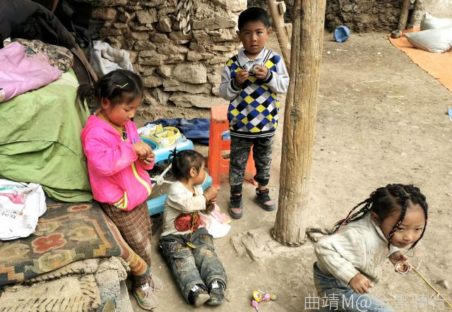 从平台上下来,这时在房子边站着两男人,一个看年龄大概四十出头,另一小伙子也就二十多岁的感觉。一年轻女人抱一个小孩站在旁边,旁边还站着两个孩子。我们给孩子棒棒糖,小孩自然很高兴。同时我们也让几个大人也尝尝棒棒糖,他们也高兴的同意。在这种融洽的氛围中,我们和他三个人有了较为深入的沟通。开始也就一些比如庄稼、牛羊、孩子、收入这些话题。这时,对话转向这个抱孩子年轻的女人,她的普通话说的还行,人也很漂亮,修长的腰身,藏族女人那种轮廓分明的脸庞。她和那个年轻的小伙年纪差不多,我随口问“他是你老公?”,她回答“是的”。对另一个男人的身份不好估计,他们从一个屋里出来,应该是一家人,是他公公呢?好像年岁还小了点。我还是抬头看向年纪大的那个男人问她“他是你父亲?”,我不知道藏族人对公公怎么称呼。女人的回答让我们惊掉了下巴,她说“是老公”。我下意识的指了一下两个男人,重复问“两个老公”,女人笑着点头。这时,旁边的涂同学惊讶的忍不住了,说“你们在一起,会不会打架,怎么、、、”,我感紧岔开了话题。有些话题真的不能继续下去了,或许是出于对他们生活风俗的一种尊重,怕不小心冒犯到他们。我看看他们一家三个人,没有对我们的问题表现不一丝的不快,一脸的坦然和自在。