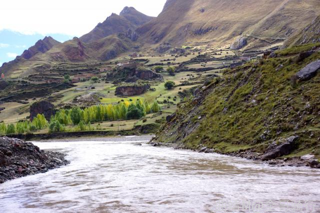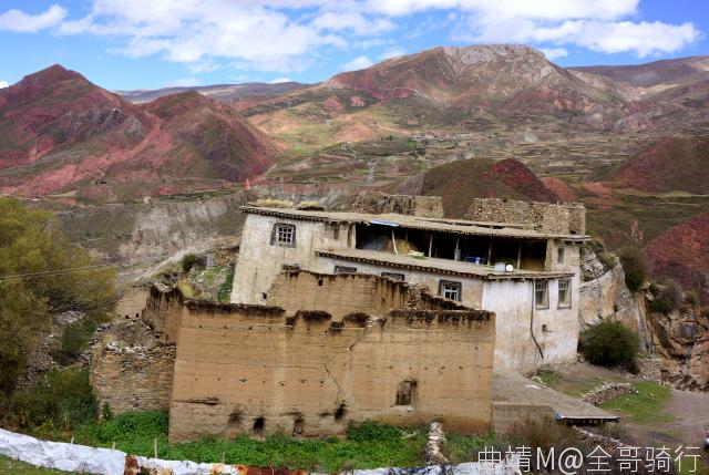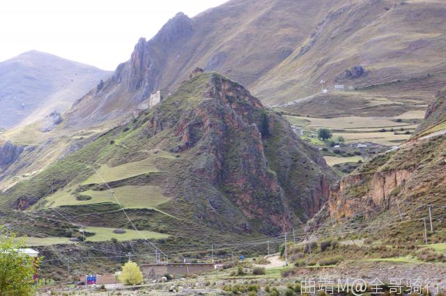 这次西藏之行,10月6日从那曲出发,10月7日到达昌都地区丁青县境内。中午在一条小河边停车休息,看到对面大山之上有一座好看的佛塔,几户人家。房屋都是高大厚实的古堡样藏式民居,山势挺拔雄厚,河谷周边有杨树叶金黄,牧草葱茏。一条极陡的山路通向村子,就有了到村里看看的想法。经得大家同意,把车挂上低速四驱,向山腰的村庄驶去。