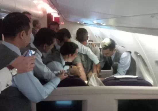 据报道,伦敦市长鲍里斯·约翰逊乘搭马航班机回国时,飞机上出现一名怀疑是喝醉酒闹事的男乘客,在飞机上先是高声唱歌,后来是大声怒骂,约翰逊劝说该男子冷静,但男子不听劝告,并企图用头撞击试图制伏他的人,后来在5名机组人员合力下被制伏。