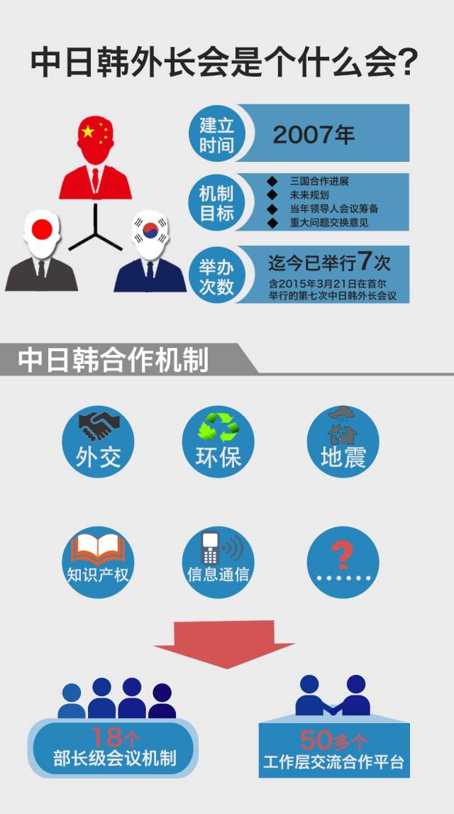 但遗憾的是,在过去这两年多的时间里,中日韩合作受到了一些不应该有的因素困扰,所以中断了近3年。去年以来,中日关系、韩日关系有所改善,特别是北京APEC首脑会议期间,中日之间实现了简短的领导人会谈。从这个意义上来说,这次外长会谈的恢复,是三方关系缓和的一个重要的标志。
