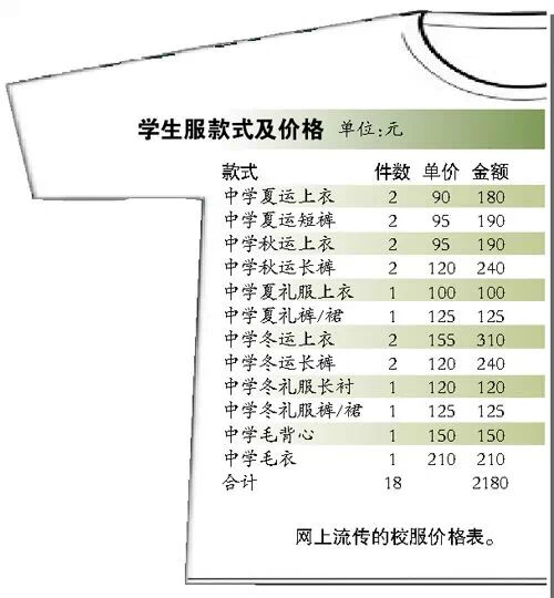 25日,东莞本地知名微博“东莞学生部落”称,“东莞外国语学校事先没有告知校服的价钱,发了校服后才告诉同学们价钱。属于先斩后奏,同学们看到这价格纷纷表示穿不起!”记者获悉,该校本次发放的校服有12种不同季节的衣服,共18件,费用需2180元。该校负责管理校服事宜的老师证实事情属实,并称校服价格是由市教育局联合多部门招标确定的。这一价格标准将在今年全市市直属中学执行。