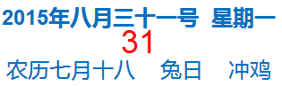 小运播报:2015年8月31日,星期一,农历七月十八,法定工作日。