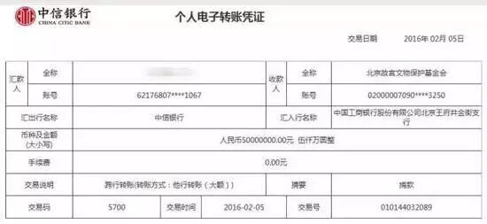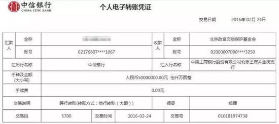 捐赠金额的汇款单故宫博物院院长单霁翔在捐赠仪式上对崔如琢先生的义举表示非常感佩,并说故宫文物保护基金会将资金用在故宫文物保护和博物馆事业的必须、必需之处。