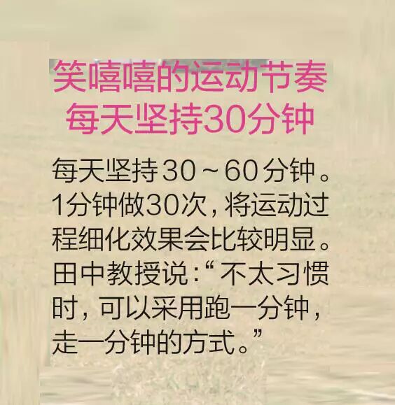 30分钟作为目标,可以分成几部分跑。慢跑对于保持良好的心脏功能,防治冠心病、高血压、动脉硬化等,具有积极的作用。最主要是比走路瘦的更快!