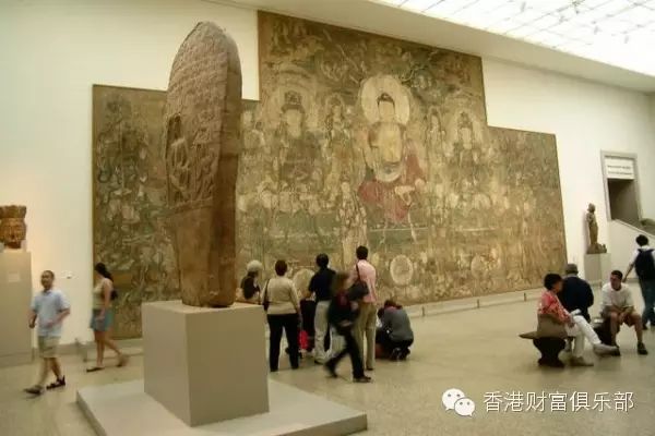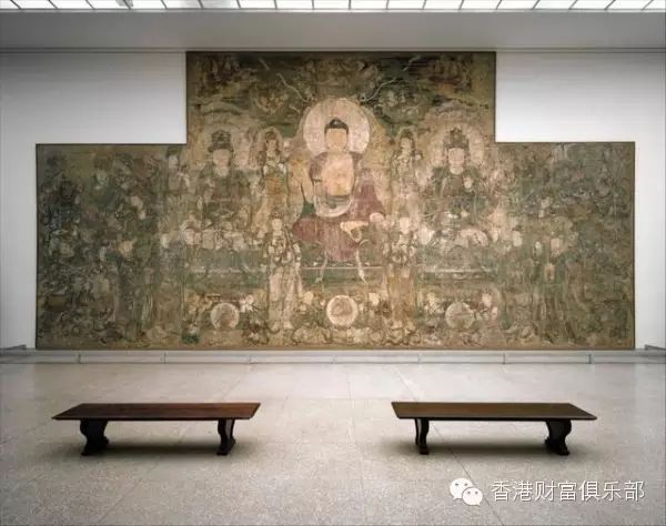 这幅《药师经变》壁画,长15.2米,高7.52米,画中端坐着药师佛,十二神将陪伴左右。形象地表现了药师如来及其随从所在的东方佛教净土的盛况。。整个一面墙壁,都被壁画占满了。纽约大都会博物馆为世界四大美术馆之一,共收藏有300多万件展品,每年迎接超过500万人次的游客,是纽约市最热门的旅游景点之一。