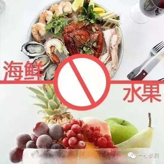 吃海鲜的同时,若再吃葡萄、山楂、石榴、柿子等水果,就会出现呕吐、腹胀、腹痛、腹泻等。因为这些水果中含有鞣酸,遇到水产品中的蛋白质,会沉淀凝固,形成不易消化的物质。