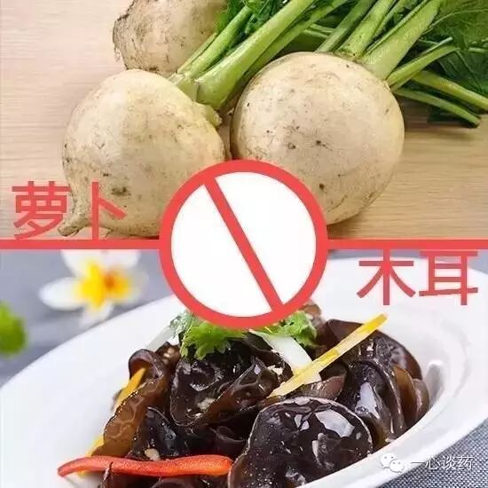 萝卜性平微寒,具有清热解毒、健胃消食、化痰止咳、顺气利便、生津止渴、补中益胃等功效。但需注意萝卜与木耳同食对某些特殊敏感性体质的人,容易引起过敏性皮炎。