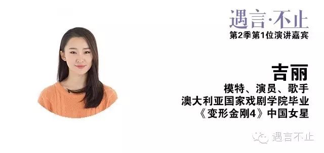 吉丽毕业于澳大利亚国家戏剧学院表演系本科,很荣幸,她成为了这所学校第一个也是至今为止唯一一个中国籍毕业生。毕业没多久,她就参与了好莱坞大片《变形金刚4》的拍摄,后来戏路平坦,她又演了贺岁电影《爸爸的假期》担任女一,《啥酒神》担任女二,现在又计划参与洪金宝的年代大戏《老卫兵》。她这一路看似顺风顺水,像有上天的眷顾似的,然而大家不知道的是,此前,她的澳洲留学经历可是让她吃了不少的苦。遇言姐至今也很难想象一个英语基础近乎为零的人是怎样在全英语的环境下生存下来的,还要每天背全是古英文的剧本。