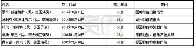据不完全统计,近年来欧美地区因抑郁自杀的艺人名单(国内媒体有所报道)