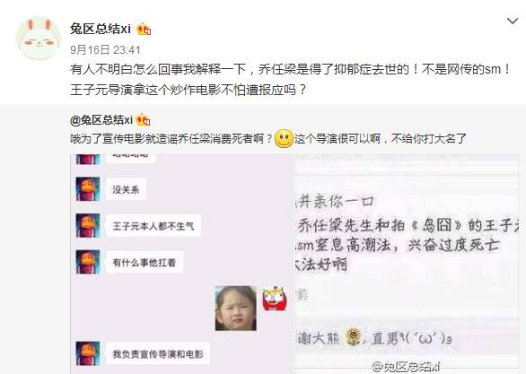 昨晚有关乔任梁的微博热搜最高峰时达1500万+,紧随着的是网传他在某导演别墅SM致死的荒谬消息。现在疑似是该导演为宣传电影炒作。