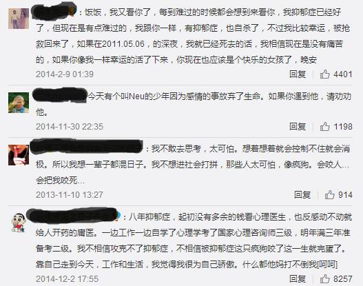 微博“走饭”现在的留言数近50万条,很多都是抑郁症的倾述: