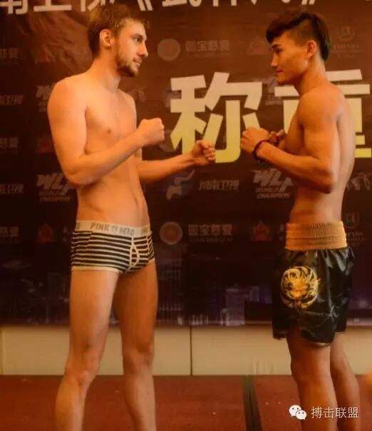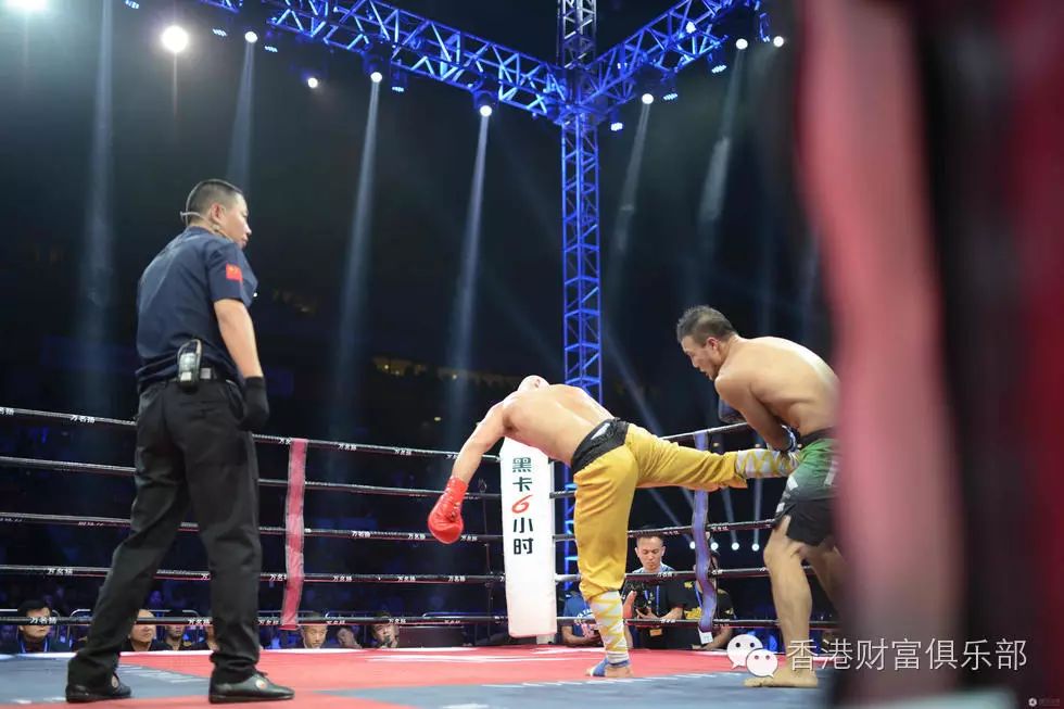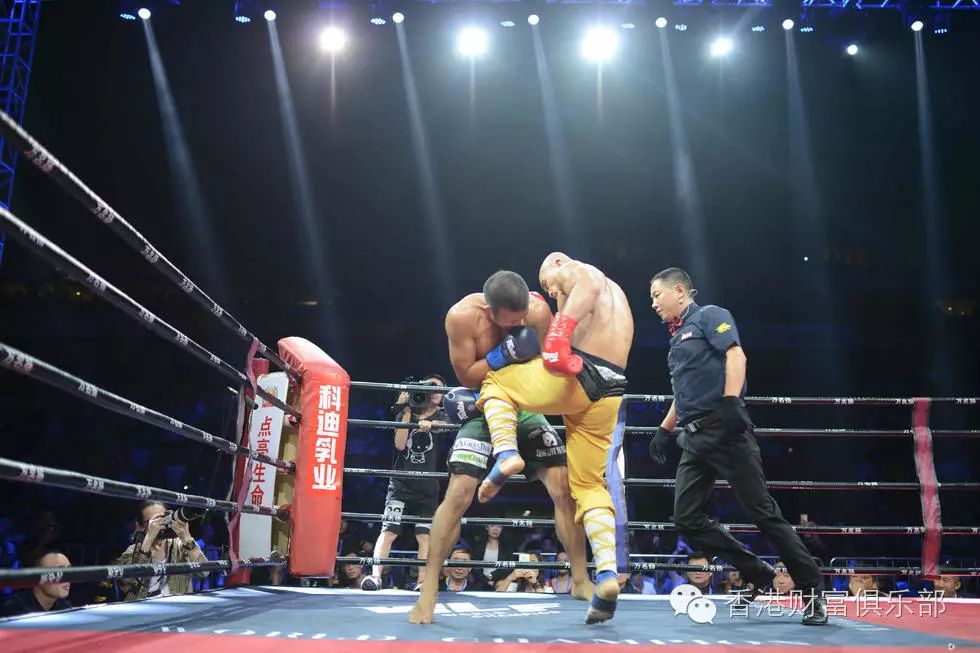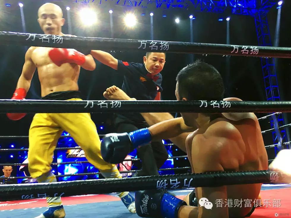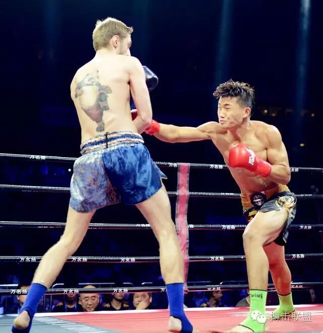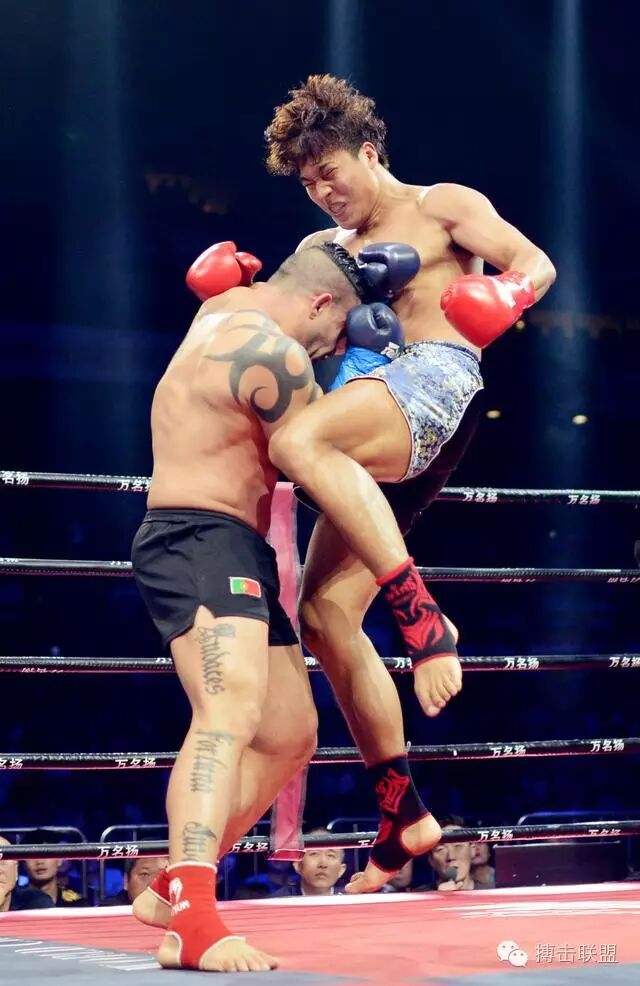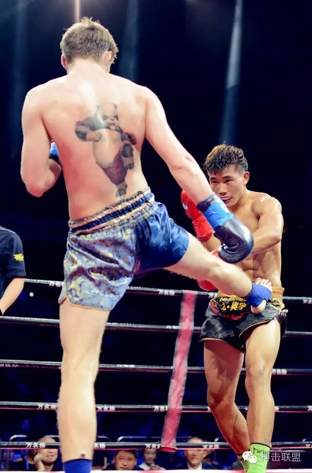 来自一龙奥宇北京搏击培训基地的苗威迎战来自西班牙的k-1冠军,开局后苗威假意扫腿踢空,故意露出破绽引对手出击,果然对手进步出击,苗威侧移一记转身鞭拳直接击晕对手,裁判结束了比赛,引爆全场,这个时候比赛才仅仅进行了15秒,即第一场之后龙家军再次拿下胜利。