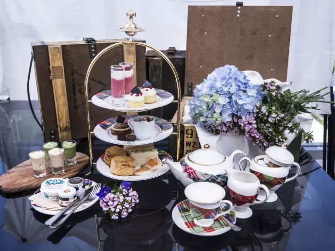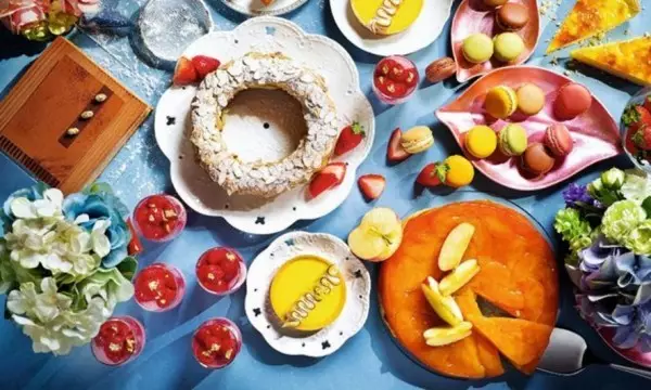包括多款甜咸糕点,如荔枝玫瑰慕斯、迷你栗子挞、传统英式松饼、手工雪糕及咖啡或红茶。