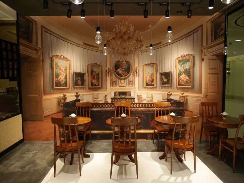 Cafe围绕Vivienne作为英国时装设计师的生活,并以时装秀场后台的“摄影棚”为理念,店内另一部分以“茶室”为主题,整个空间体现了Vivienne