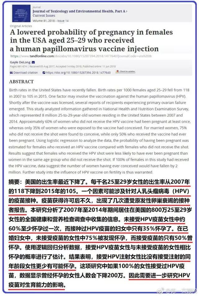 重磅!美国25-29岁女性中接受HPV疫苗注射女性怀孕概率降低25%!