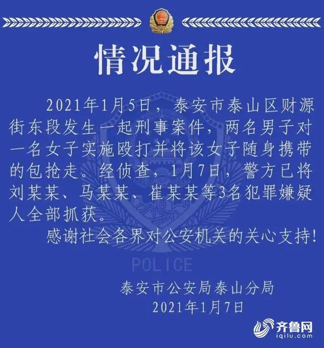 泰山之下即是泰安,国泰民安,首善之城,居然出现当街殴打抢劫的恶行,震惊国人,震惊地方。泰安市公安局能迅速抽出警力,在两天内破案,将犯罪嫌疑人抓获,无疑给全国人民、泰安人民了一个满意的答案。要点赞!