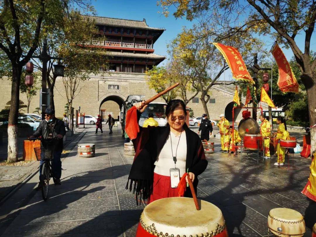 对,这个在聊城古楼西大街敲鼓的就是俺媳妇
