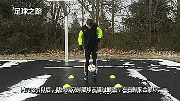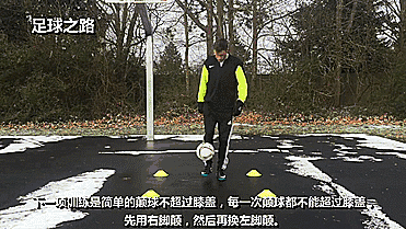 做完这个以后,就换成双脚颠球不超过膝盖,左右脚配合颠球。