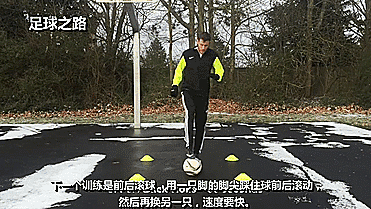 第五项 巴西滚球(自命名)脚尖踩球,从右脚滚到左脚,再从左脚滚回来,速度要尽可能地快;