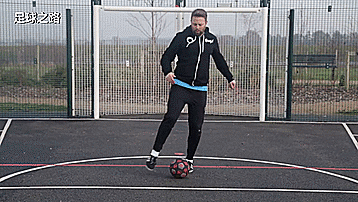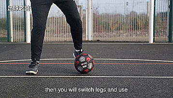这个动作有点像牛尾巴,但是每一次触球都需要随球迈一步,练习时你还可以幅度再大一点